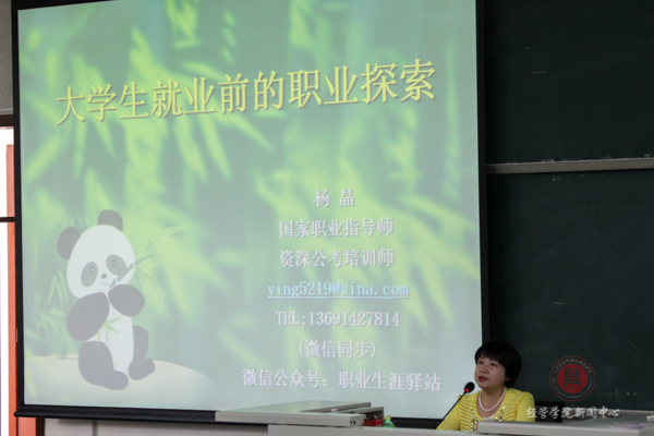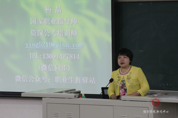 5月9日下午13:15,国家职业指导师、资深公考培训师杨晶在教B103为球王会2015级员工举办“老员工就业前的职业探索”讲座,解答同学们未来可能会在就业方面遇到的各种问题。