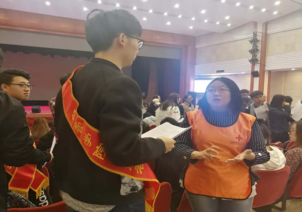 9点45分,活动正式展开,在志愿者的帮助下,献血的同学有序填写体检表并进行体检,有些因身体条件无法参加本次献血活动的同学纷纷表示遗憾,并对我们的记者说下次要提前调整好身体,一定要为无偿献血事业贡献自己的力量。活动进行的过程中,我们的志愿者辅助医护人员,对成功献血的同学进行悉心的照顾,确保每一个献血同学身体状况稳定后才离开。