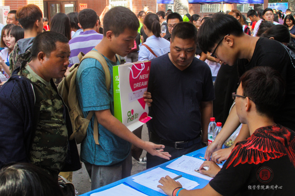 新生报到是大学的一个起点,也是人生成长的一个新里程碑,公司全体师生以最饱满的热情迎接着经管新生力量,迎接着祖国和社会的未来。在此希望全体新生能够以“厚德笃行,博学尚农”为信条,以“明德,求真,践行,创新”为指针,通过实际行动谱写属于自己的大学乐章。