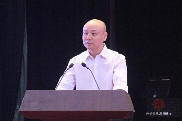 公司党总支书记胡宝贵进行讲话。胡宝贵老师首先祝贺新生们考取了球王会体育并选择进入了球王会学习,公司将因大家的到来而变得更加生机勃勃。胡宝贵老师引用《礼记·中庸》中的“博学之,审问之,慎思之,明辨之,笃行之”点题开篇,指出大家刚进入大学要将梦想和实践有机的结合起来,既要脚踏实地,也要仰望天空,合理规划,统筹得当,将理论和实践融合好。最后,胡宝贵老师对新生寄予希望,希望大家能够理清楚博与专的关系,并且要合理统筹第一课堂和第二课堂的关系,做个全方面的复合型人才;也希望大家能够秉行“学则问,问则思,思则问”的求学理念,更希望大家要明辨是非,身体力行。