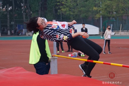 跳高比赛在操场的北侧如火如荼的进行着。王思晨同学在起跳前的助跑上,郑重的一步一量,走直角路线。从起点到终点,起跑冲刺,在跳高杆前身体一转,脚下发力,奋力起跳,并且每次都是用标准背空翻的姿势,身体划过一道优美的抛物线,再来一个漂亮的后滚翻,落在后面的垫子上,一系列动作凸显其专业的技术且重视的态度,最终为球王会争得了第二的优秀名词。侯思媛同学也获得第五名的好成绩。