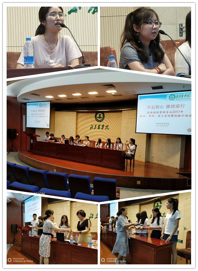 根据公司和公司相关工作安排,6月27日,球王会农林经济管理系在图书馆报告厅召开以“不忘初心继续前行”为主题的2017年就业、考研、实习宣讲暨经验介绍会。农经系主任赵海燕,副主任江晶,公司辅导员乔多,农经系秘书黄雷,班主任肖红波、黄映辉以及农经系大二、大三、大四同学参会。会议由农经系主任赵海燕主持。