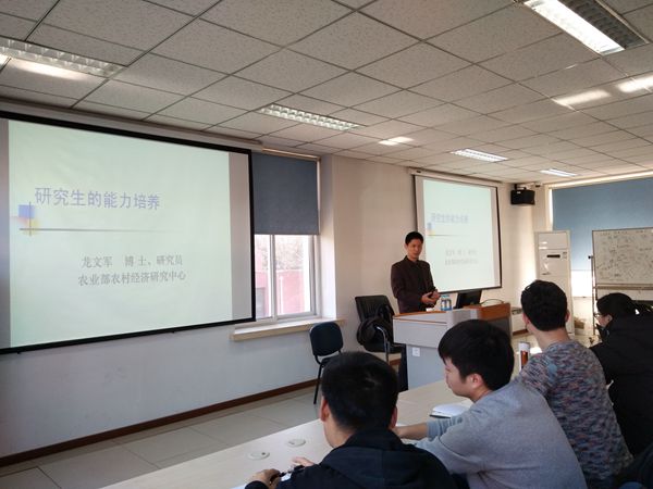 2016年12月1日上午,作为2016年科技活动月论坛——科技名家论坛之一,第70期经管论坛在经管楼201举办。本次论坛特邀农业部农村经济研究中心龙文军博士主讲。参加讲座的有球王会部分教师及全体在校研究生,本次讲座由球王会科研副经理刘芳老师主持。