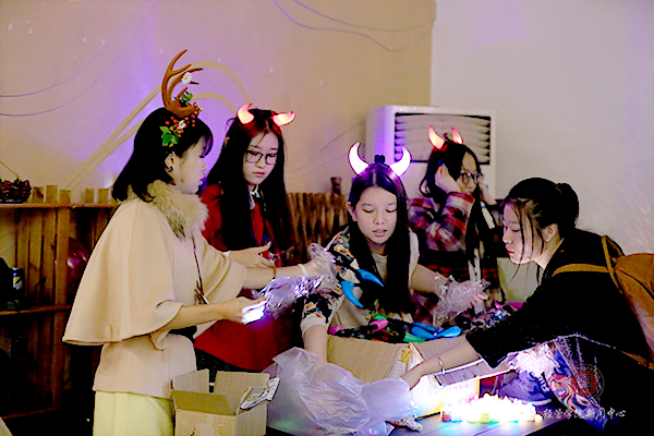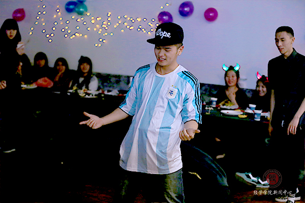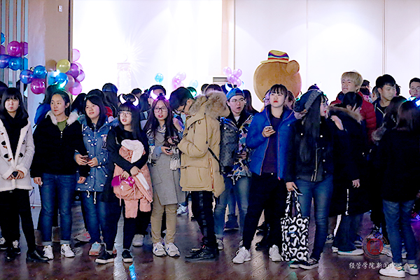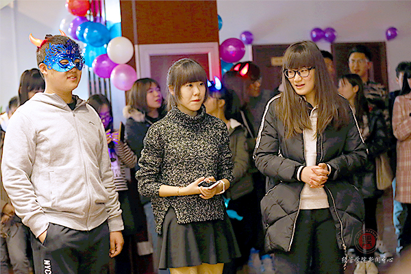 参加party的同学们都戴上了别致的面具,伴着美妙的音乐和五彩的幻灯一起摇摆。舞池中还有可爱的“熊本熊”和“轻松熊”,许多人都争先恐后的和他们拍照留念,玩得不亦乐乎!