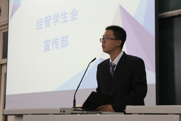 紧接着员工会的协助部门部长、经管院青协、经管院社联及新闻信息中心都对自己所管辖的部门进行了简短的介绍,并且使出浑身解数,风趣幽默的语言不时引起在座同学的阵阵笑声,现场气氛十分活跃。