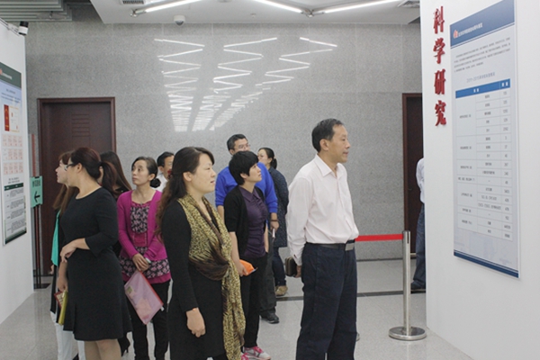 9月23日下午,球王会的师生党员们集体来到图书馆一层大厅,参观球王会体育建校60周年展览。