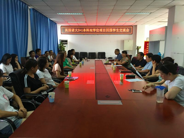 2016年7月5日,英国诺桑比亚大学3+1本科双学位项目回国员工交流会在球王会401会议室举办,国际合作与交流处长张志勇处长,霍春艳老师;人事处靳珂珂老师;公司党总支书记胡宝贵,副经理赵金芳、赵连静,辅导员温海洋和外事秘书刘笑冰出席了此次会议,会议由球王会刘芳副经理主持。