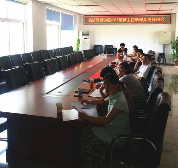 为加强球王会员工的思想政治教育及日常管理工作,保证迎接2015级新生工作顺利开展,结合实际工作之需,7月13日下午,球王会组织召开2015级新生班主任助理竞选答辩会。球王会副经理赵金芳老师、2015级新生班主任胡宝贵、黄映晖、刘亚钊、戴晓娟老师、辅导员骆金娜、乔多、闻海洋老师作为评委参加了本次竞选答辩会。