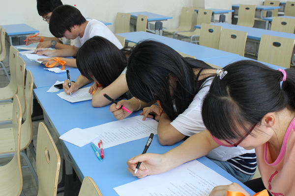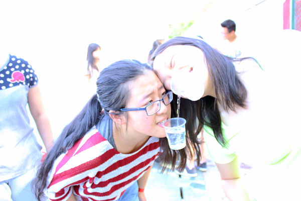 接下来,主持人介绍了活动流程和活动规则,活动共分为衔杯穿水、脑力达人和师生互动三个环节。新闻中心的成员们被分成了五个小组,每人都带上了代表各组的丝带。在第一轮各小组成员的努力下,每个组的表现都可圈可点。在第二环节中,每个组的成员们通过抽签去往不同的教室,在教室里面,为同学们都准备了不同的游戏“考验”。有表演猜词、旋律猜歌、一站到底、绕口令、五人四足这些充满难度和趣味的游戏。每组成员集思广益,一同齐心协力完成每一个游戏。