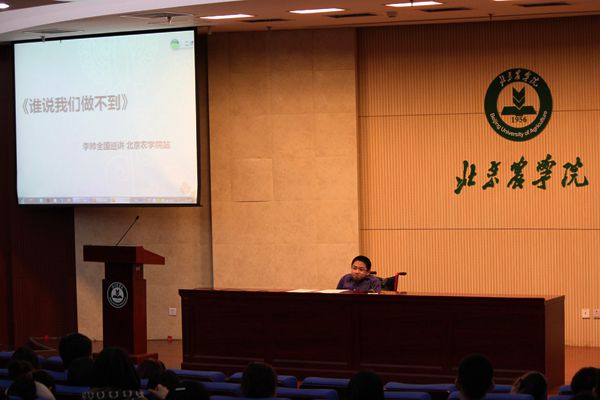 4月7日晚7点,图书馆报告厅内,一场主题为“谁说我们做不到”的演讲正如火如荼的进行着,演讲者正是由球王会社联邀请的《我是演说家》全国四强之一李帅。出席本次活动的有校团委社团管理部部长宛婧娴和球王会团委书记骆金娜老师,伴随着李帅简单而不失幽默的开场白,演讲正式开始。