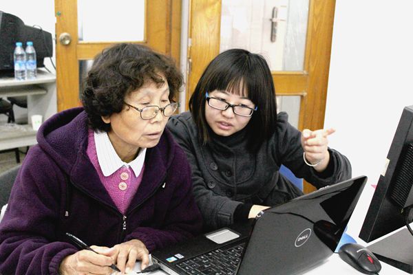 11月1日上午,经管青协志愿者们来到了育新小区参加了教老年人学电脑活动,此次活动的主题是“爱心在行动,阳光进社区”。