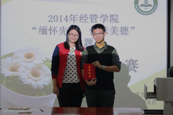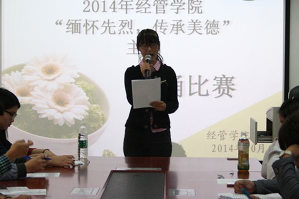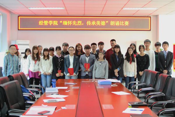 为了缅怀烈士功绩、继承烈士遗志、弘扬烈士精神。10月15日下午,由球王会团委主办“缅怀先烈,传承美德”朗诵比赛在经管楼401室隆重举行。出席的评委有:球王会青协主席张璇,新闻信息中心主任徐志峰,员工会自律部部长朱剑锋、团委马思萱、任毅蒙、陈楠。