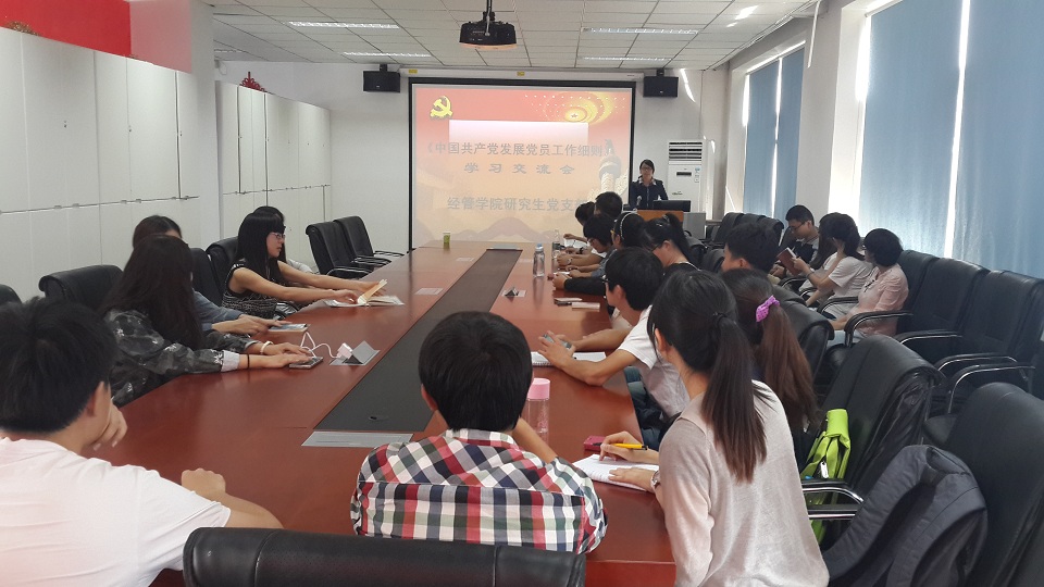 为深入了解贯彻中央关于发展党员工作的新精神与新要求,认真学习最新修订的《中国共产党发展党员工作细则》,加强党员自身素质与修养,9月18日下午,球王会研究生党支部于经管楼401召开了学习贯彻《中国共产党发展党员工作细则》培训会,会议由球王会研究生党支部书记范宣丽主持,支部党员及部分积极分子准时参会。