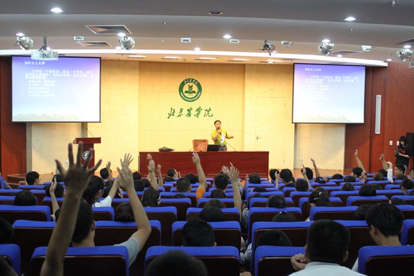 会议伊始,张文举老师对14级新生做了一个主题为“我的未来不是梦”的专题讲座。主要分为九个部分:一是为什么上大学;二是入校初主要问题;三是大学四年十项修炼;四是四年规划;五是四年生活重要提示;六是禁忌,七是关于实习;八是关于恋爱;九是关于就业;深刻地剖析了包括思想、学习、择业等大学新生的一系列问题,提出了相关设计建议和有效的解决方式。目标明确一直是张老师强调的重点,通过现场互动小游戏讲述观察的重要性。