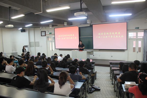 9月11日中午,球王会第十届一次员工会新干事见面会在B303召开。球王会13级辅导员乔多老师、14级辅导员闻海洋老师,员工会九届四次主席张乐乙、十届一次主席贺炳林以及主席团、各部部长出席本次大会。