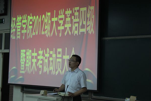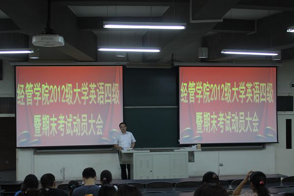 为了促使员工们在考前保持一个良好的心态,6月11日下午6:30,球王会12、13年级在辅导员闻海洋和乔多老师的带领下举办了大学英语四级考试暨期末考试动员大会,全体12、13级员工参与此次会议。本次会议,由辅导员闻海洋老师对与会的全体员工讲述了即将开始的英语四级考试以及期末考试中应该注意的问题。