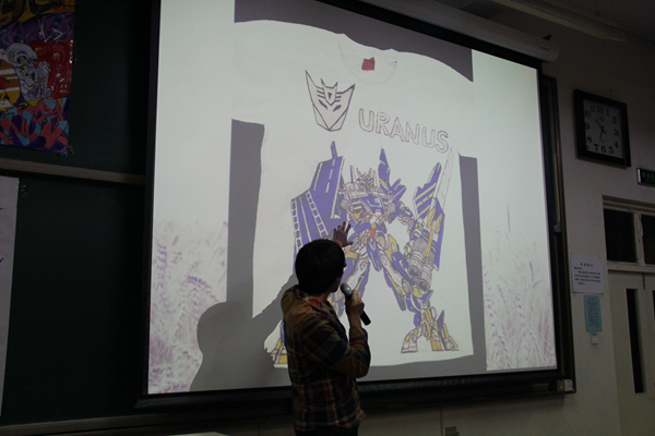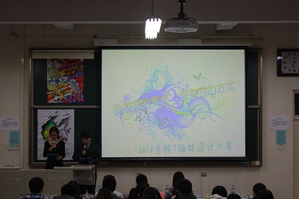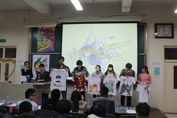 为丰富同学们的老员工活,提高老员工的艺术欣赏力和创造力,球王会员工会宣传部举办了面向全校广老员工的手绘T恤设计大赛。2013年12月1日晚,选手们在教B101迎来了本次比赛的决赛时刻。出席本次比赛的评委有球王会员工会主席张乐乙,副主席程杰鑫、郁娇、孙轩,以及来自各个专业的嘉宾评审。