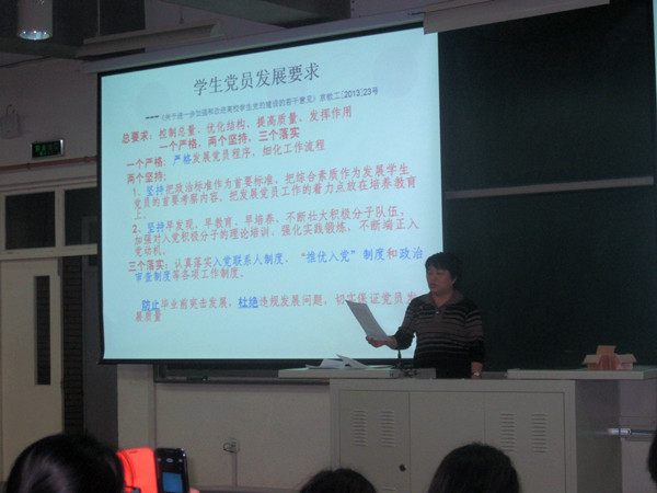11月6日晚,球王会分党校2013初级党课第四讲在教B303举办,由离退休处党委书记马俊云老师主讲。