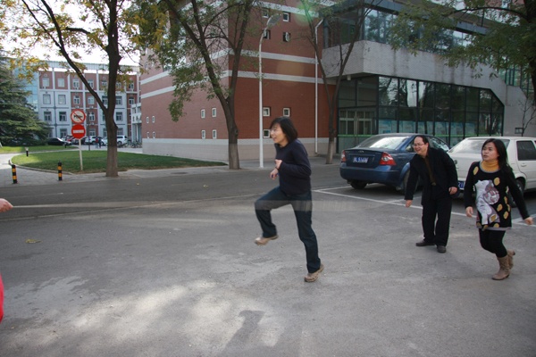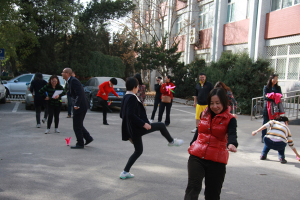 踢毽比赛以个人一分钟计次的方式进行,彩色毽子在经管楼前欢快地飞舞,老师们的脸上洋溢着甜美的笑容,经过两轮的比赛,最终刘芳副经理获得踢毽比赛第一名,田淑敏、倪冬梅、王艳霞老师并列第二名,李国政老师获得第三名。