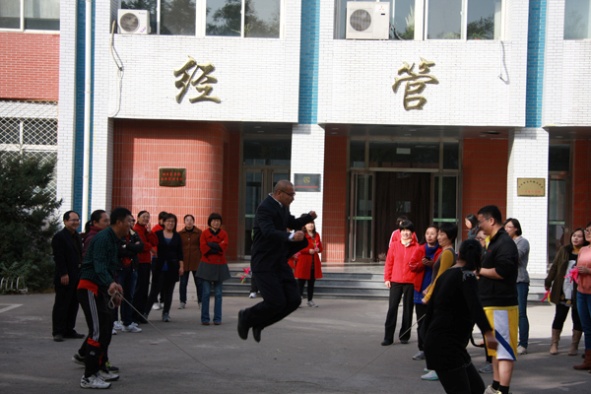 为加强球王会教职工之家建设,促进党政工共建一个家,提高教职工球王会分工会于2013年11月15日中午在经管楼前组织了球王会第九届教职工跳绳踢毽比赛。球王会大部分老师参加了此次活动。