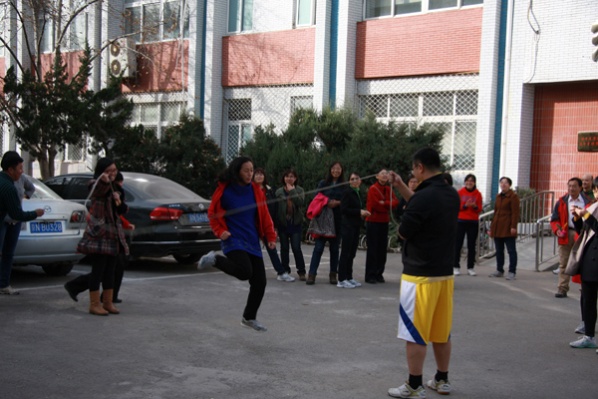 跳绳比赛以工会小组为单位分成六组,以一分钟长绳八字跳的方式进行比赛。比赛把老师们的动态美展现的淋漓尽致。只见老师们一个个轻盈的跳过绳子,他们之间配合默契,相互鼓励,相互为对方记录着踢毽的个数,经管楼前热闹非凡。最终,行政教辅工会小组获得第一名,经济系小组获得第二名,营销系小组获得第三名。