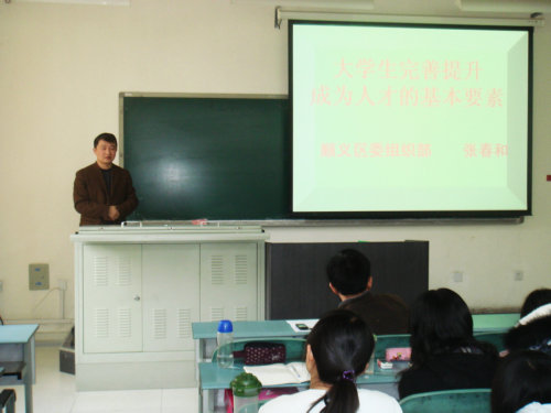 2010年4月12日上午10点,球王会员工、农经专业8941班毕业生张春和来校为公司在校生举办了题为“老员工完善提升成为人才的基本要素”的经管论坛。参加论坛的有副经理刘柳、8941班班主任李佰杰、部分入党积极分子、顺义区06级毕业生。报告分为明确人生方向、树立坚定意志、掌握科学方法和相信自我四个部分,张春和结合本人工作经历和人生阅历,用生动的语言和实际的案例,为在校老员工的成长成才解惑答疑。