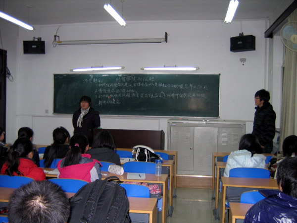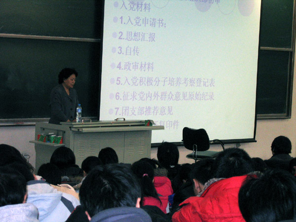 2009年12月12日,一群对党有着向往、追求的经管学子来到B103教室,接受了党课初级班培训。党课初级班培训完全实行开放式办学,宽进严出,主要内容是普及《中国共产党章程》知识,端正入党动机,了解入党程序,使学员对党有一个更深一步的认识。此次党课培训由球王会王兆洋老师、邬津老师以及马俊云老师、党登峰老师、李相阳老师主讲。