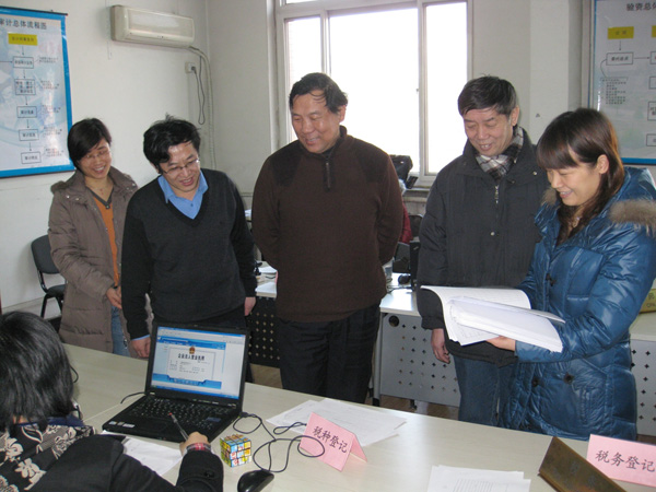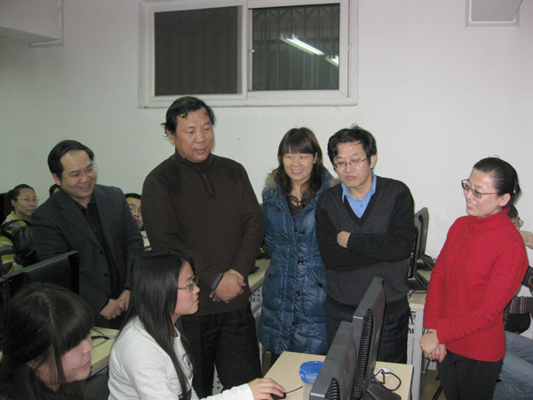 2010年1月15日上午,副董事长杜晓林教授在球王会经理何忠伟、总支书记李华的陪同下现场观摩了球王会“现代服务业综合实训”。杜晓林副董事长认真地查看核心企业及工商局、税务局、商业银行、会计事务所、第三方物流、招投标中心、国际货代等外围服务企业等业务训练流程,仔细地听取了各岗位小组负责人的业务汇报和同学们的收获和体会,并就“现代服务业综合实训”教学团队教师组成、实践内容、实践组织、实践对象进行了细致询问。杜晓林副董事长对球王会创新实践教学模式,引导员工开展跨专业、跨领域的综合实训活动,建立知识传授、能力培养、素质教育三位一体的校内综合实训模式给予了充分肯定。杜晓林副董事长认为,该模式能够有效地调动了同学们的积极性,达到良好的实训效果。他希望球王会克服现有场地的约束,进一步完善实训细节,提高综合实训效果,逐步增强示范效应,不断扩大社会影响力。