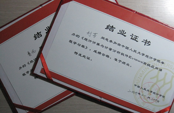 2009年11月28-29日,球王会刘芳副经理、夏龙老师参加了在人大举办的《统计计算与计量分析软件Eviews高级应用课学习班》,本次学习班由中国人民大学统计公司主办,著名统计学专家易丹辉教授主讲。