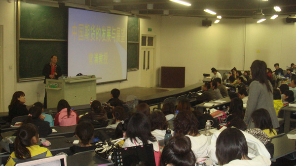 2009年10月13日晚上,球王会邀请著名经济学家常清教授在教B103做了报告主题为《中国期货市场的发展与展望》的报告。来自球王会及各院系的师生200多人聆听了本次讲座。