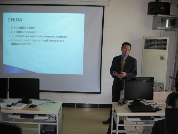 刘璨研究员的报告分为三部分。他首先向经管师生介绍了中国林业资源的概况,通过介绍林业研究中的几个重要指标:中国的森林覆盖率、林地面积、宜林地面积、人均林地面积、天然林面积、人工林面积等,使经管师生在最短的时间内了解中国林业资源的总量概况。在此基础上,刘璨研究员通过图文并茂的方式介绍了中国森林资源的分布状况,尤其是天然林和人工林各自的分布状况。此外,他还介绍了中国林产品出口和林业法规与政策的概况,这些介绍使与会师生进一步了解中国林业资源的现状。