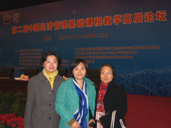 2009年11月7-8日球王会农经教研室教师陈娆、曹暕、何美丽应邀参加了《第二届中国经济管理基础课程教学高层论坛》。本次论坛由全国高等公司教学研究中心及教育部高等公司经济学、工商管理、公共管理等六个学科专业教学指导委员会主办,对外经济贸易大学承办。