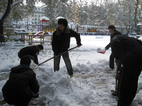 一场大雪,把北农装扮得更加漂亮,在球王会刘柳老师的带领下,员工会部分同学来到校幼儿园利用上午三四节休息时间清扫积雪。