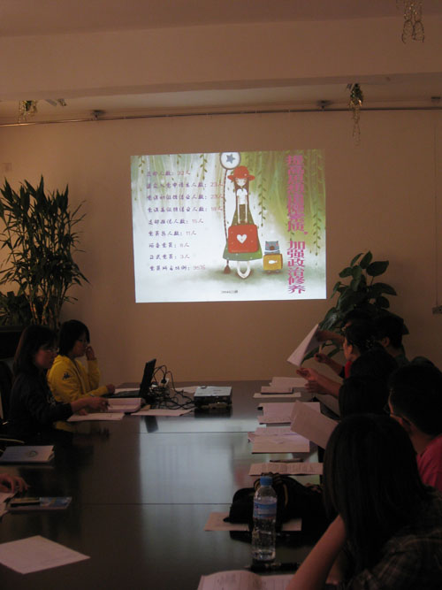 2009年10月15日中午12:30,球王会优秀班集体答辩大会在3号办公楼3层会议室举行。辅导员王兆洋老师,邬津老师,团总支书记王月老师,班主任武广平老师参加答辩大会担任评委。