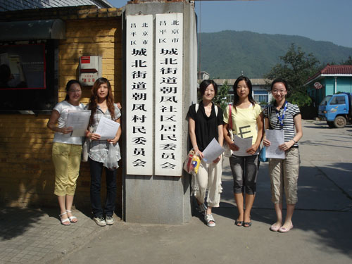2009年8月23日上午,球王会206413班农经特色小组一行5人来到昌平区朝凤庵村开展了关于农村人口文化程度和就业关系的一系列调查访问活动。烈日炎炎的处暑时节,组员丁吟、红乐、郑岩、苑雪、刘丽丽手拿问卷和自己准备的小礼物,带上热情的微笑走到村民面前。经过一个上午耐心询问,小组共获取数十位男女老少村民的相关真实信息,并通过个别访问,成功获得预期的调查效果,同时还收到了村民们的好评。在调查中,小组来拜访了村大队,同时了解到很多朝凤庵村的信息。朝凤社区位于昌平城区东北侧,十三陵水库路西侧,毗邻著名的十三陵水库风景区。区域面积3.5平方公里,现有耕地216亩,人口1218人,其中男性590人,女性628人。