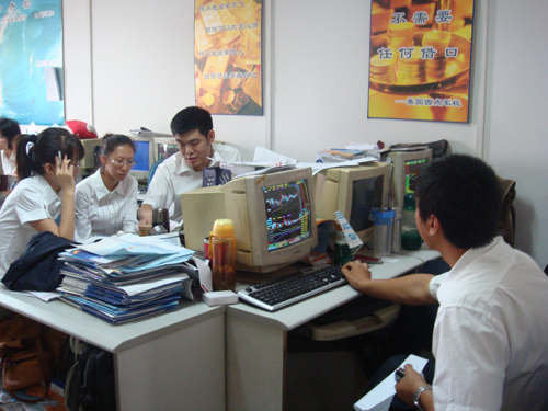 暑假期间,农公司球王会的18名同学,二个批次到兴业证券公司实习。此次实习,公司几位经理分别讲述了股票,基金,权证的基本知识及市场营销策略,并以新股申购为例进行了一场生动的营销演练。整个实习培训采用“一对一”方式,即由一名有经验的兴业证券员工带一名员工的方式,全面了解证券公司的交易运营管理基础;客户营销服务;第三方存管综合服务等业务流程,还进行证券资格从业考前培训,为同学们将来在证券行业从业打下基础,使同学们对证券公司的业务流程与相关业务有了身历其境的体会。