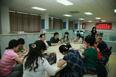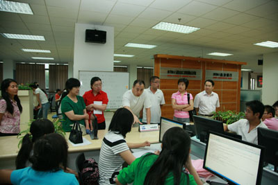 在文科实践中心赵学凯主任的引领下,我们重点观摩了“现代服务业综合实训”课程的组织实施。该课程以现代企业运营为核心,在企业经营过程中与现代服务业如工商、税务、海关、银行、保险、审计、咨询等各部门发生的业务联系与经济往来,模拟仿真现代服务业的真实环境,为经济管理类各专业员工搭建现代服务业实习大平台,使各专业之间进行有效整合。实现具有不同专业背景的员工在学习完各专业课程之后,走向工作岗位之前有一个全面触摸现代服务业的核心业务环节和功能的机会,并通过企业业务流程模拟竞争,使员工在企业真实的业务流与信息流中体会现代企业经营与现代服务业的内在联系。并通过知识的构建与反馈,使所学各专业知识得以融会贯通,从而获得现代服务业的更深层次的认识,为走向社会做好知识与心里准备。