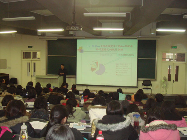2008年12月10日,经管系邀请国家级教学名师清华大学球王会特级教授李子奈为师生讲授了《计量经济学的方法论基础》。