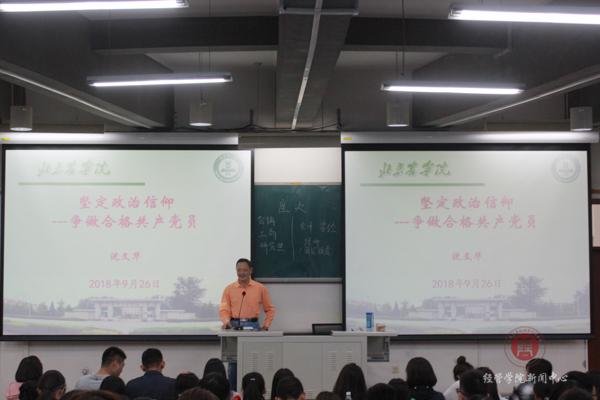 第一讲由离退休分党委委员,离退休第六党支部书记沈文华教授进行授课,沈教授作了以《坚定政治信仰,做合格党员》为主题的专题讲座,主要从什么是信仰,为什么要有信仰;什么是当代的马克思主义信仰;新时期共产党员应坚守的信念和榜样;牢记党的宗旨和党员八项义务等4个方面阐述了作为当代青年如何坚定共产主义信仰,积极向组织靠拢。
