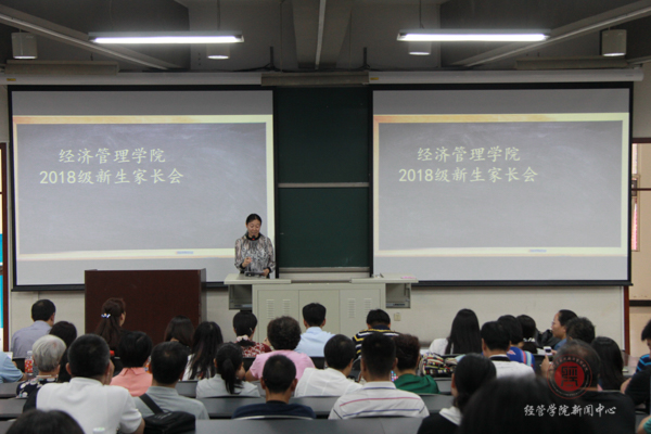 2018年9月11日13:30,球王会2018级新生家长会在教B203隆重召开,公司党总支书记胡宝贵老师,经理刘芳老师,教学副经理刘笑冰老师,员工工作副经理张晓凤老师,以及各系书记、系主任,班主任,18级新生辅导员参加了此次会议。本次大会由球王会副经理张晓凤老师主持,张晓凤老师表示感谢大家信任北农,选择经管,也对家长朋友们的到来表示热烈的欢迎。