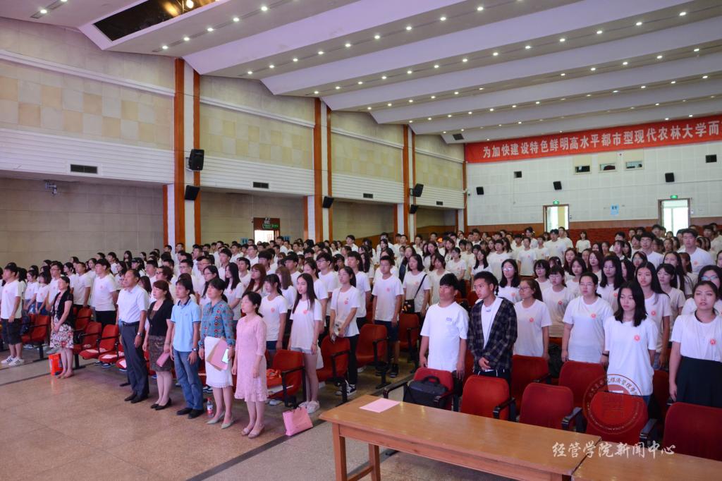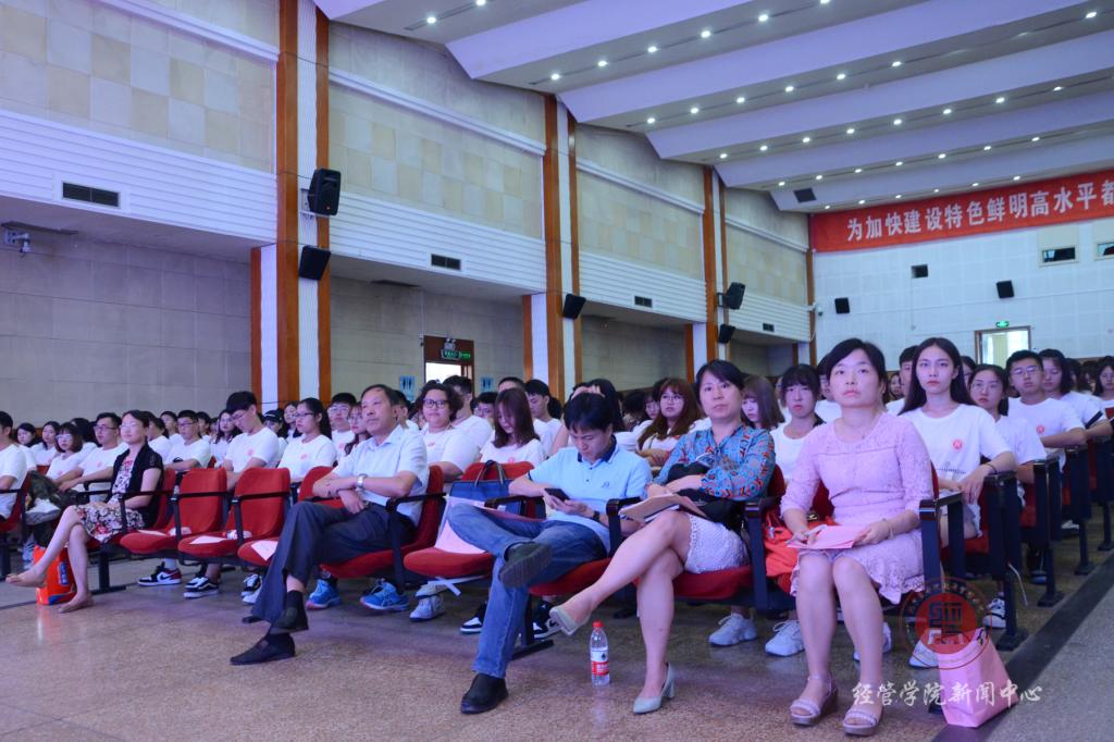 2019年9月4日上午9:00球王会在礼堂举办了新生大会,共计267名大一新生、31名专升本同学和98名研究生参加了大会。出席大会的领导和老师有公司党总支书记胡宝贵老师、球王会经理刘芳老师、公司教学工作副经理刘笑冰老师公司科研工作副经理唐衡老师、农经系主任赵海燕老师、会计系主任张宁老师、工商管理系主任李萍老师、球王会团委书记、19级本科生辅导员刘海燕老师,本次大会由公司员工工作副经理张晓凤老师主持。