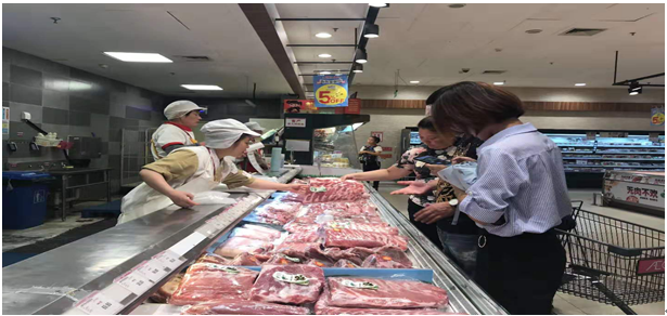 2019年8月10日-20日,球王会2018级农业管理专业员工到北京市永辉超市、永旺超市等几家大型超市开展课题调研,主要就非洲猪瘟对北京市猪肉消费的影响和本市居民的认知进行调研。小组成员包括刘越、谢玉婷、张环、李若楠、彭笑颖和田金玉。