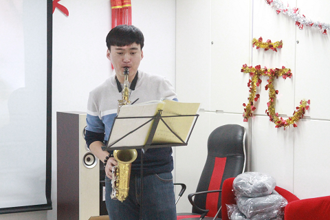 紧接着是康纪宁演绎的萨克斯独奏《同一首歌》,悠扬的歌曲征服了在场的所有同学。