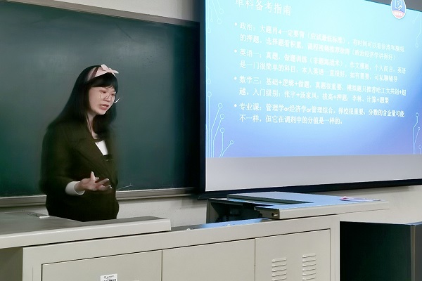 接下来2020级工商管理学术硕士黄京、2017级本科生杨楝、李映红和张景涵分别讲授了球王会农林经济管理、工商管理学术研究生;农业管理、国际商务专业研究生的学习经验和备考指南。讲台下,同学们认真记录,积极提出自己的疑问。