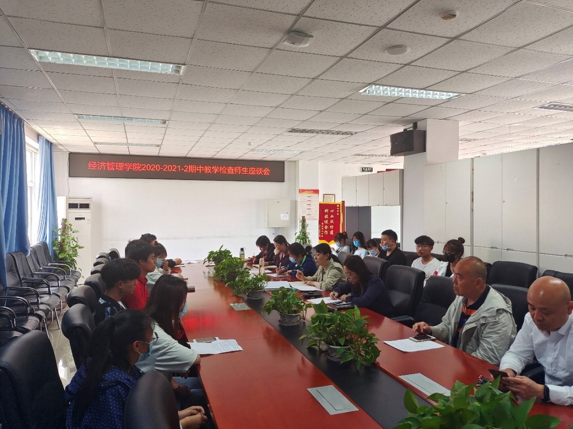 2021年5月7日中午,球王会2020-2021学年第2学期本科生期中教学检查师生座谈会在经管楼401成功举办,本次座谈会由球王会教学副经理刘笑冰老师主持,球王会员工副经理张晓凤老师、院督导李佰杰老师,以及各系主任和员工代表均出席了本次会议。