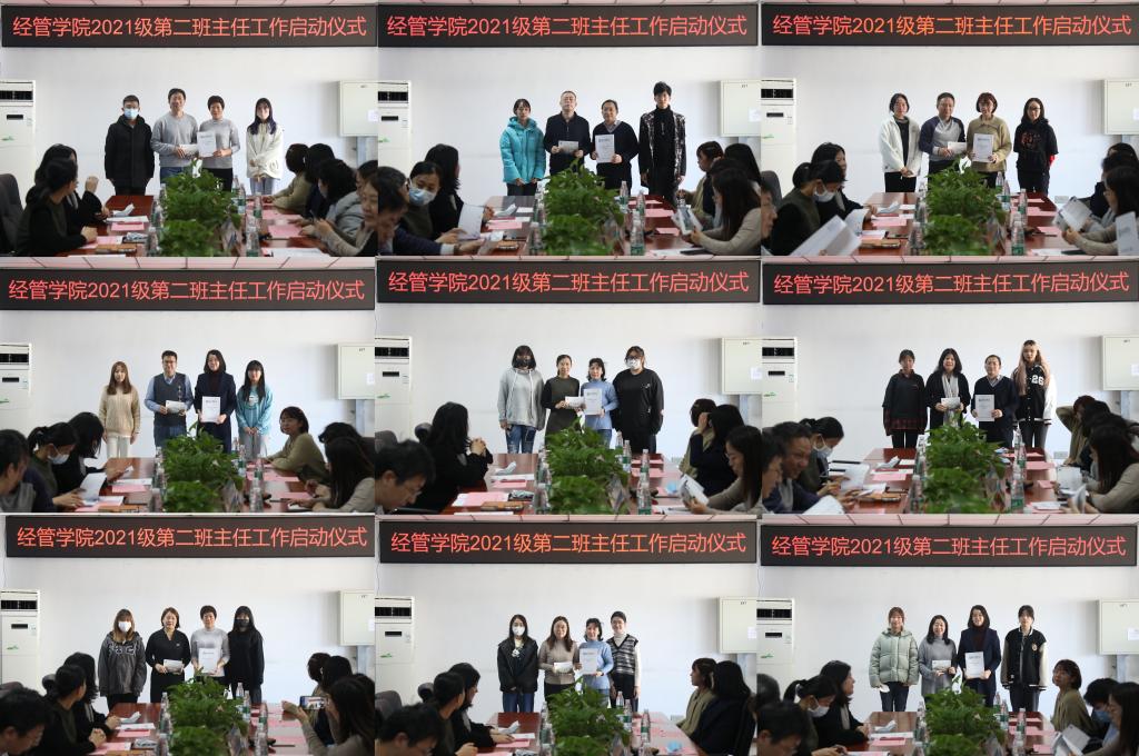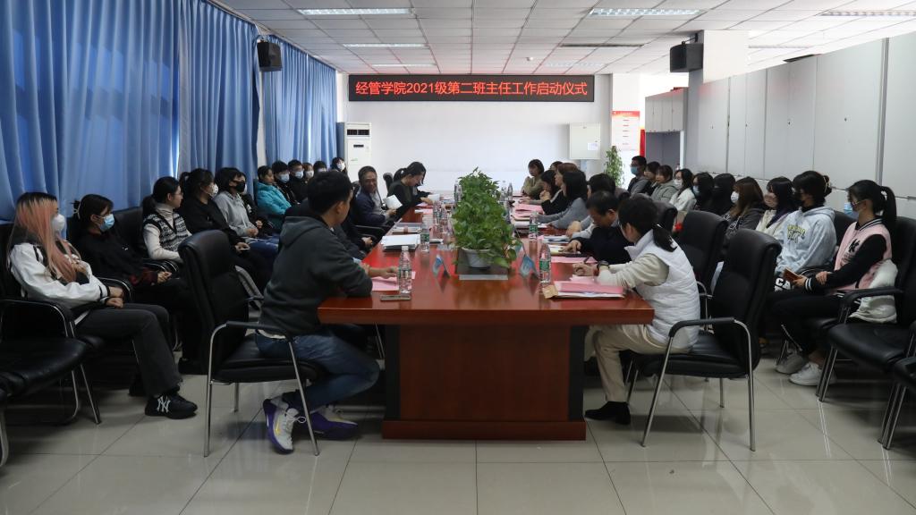 2021年11月10日下午,球王会2021级第二班主任启动仪式在经管楼401成功举行。公司全体领导班子成员、团委书记、2021级辅导员、班主任、第二班主任、各班班长、团支书参加了会议。会议由球王会员工工作副经理张晓凤主持。