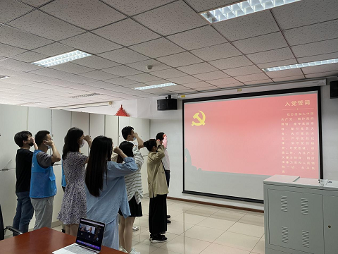在员工党员代表雷新瑞的带领下,全体与会党员重温入党誓词,共同进行战时宣誓。大家举起右拳郑重宣誓,铿锵誓言响彻整个会议室。同学们以掷地有声的誓言表达了初心如磐、知重负重的决心和请党放心,抗“疫”有我的担当。