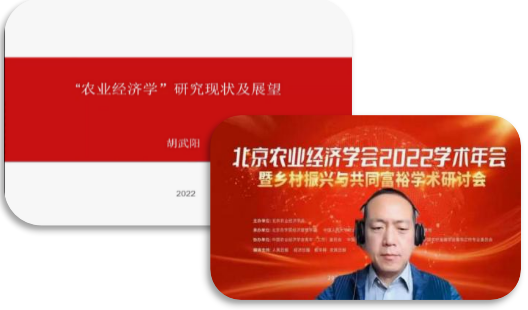 俄亥俄州立大学胡武阳教授在线上以“农业经济学研究现状及展望”为题作主旨发言。胡武阳教授重点讲解了“美国农业经济”、“环境经济与管理”等期刊近10年的发表关键词及关键词的演化,介绍了“美国农业经济”期刊的论文发表情况,增强了与会专家学者对农经领域期刊的了解与投稿信心,让大家更加了解农经学科国际研究前沿和热点。