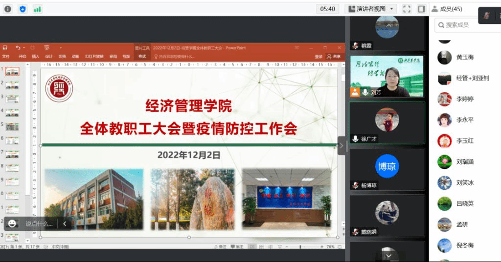 球王会教学工作副经理刘笑冰就线上教学、学期末线上考试成绩录入、2019级本科毕业论文中期考核、2023届毕业预审核、教学质量年报撰写、课程思政建设、教学创新大赛申报等方面的工作进行了部署。