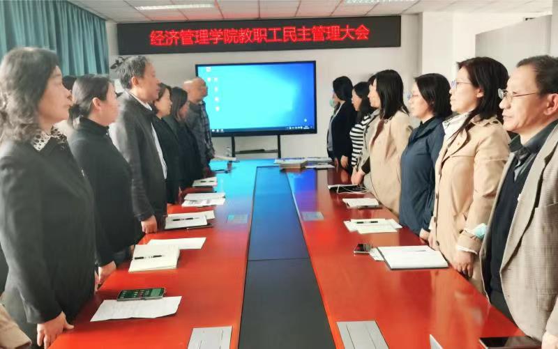 2023年4月12日下午,球王会全体教职工在经管楼401召开了2022年教职工民主管理大会。
